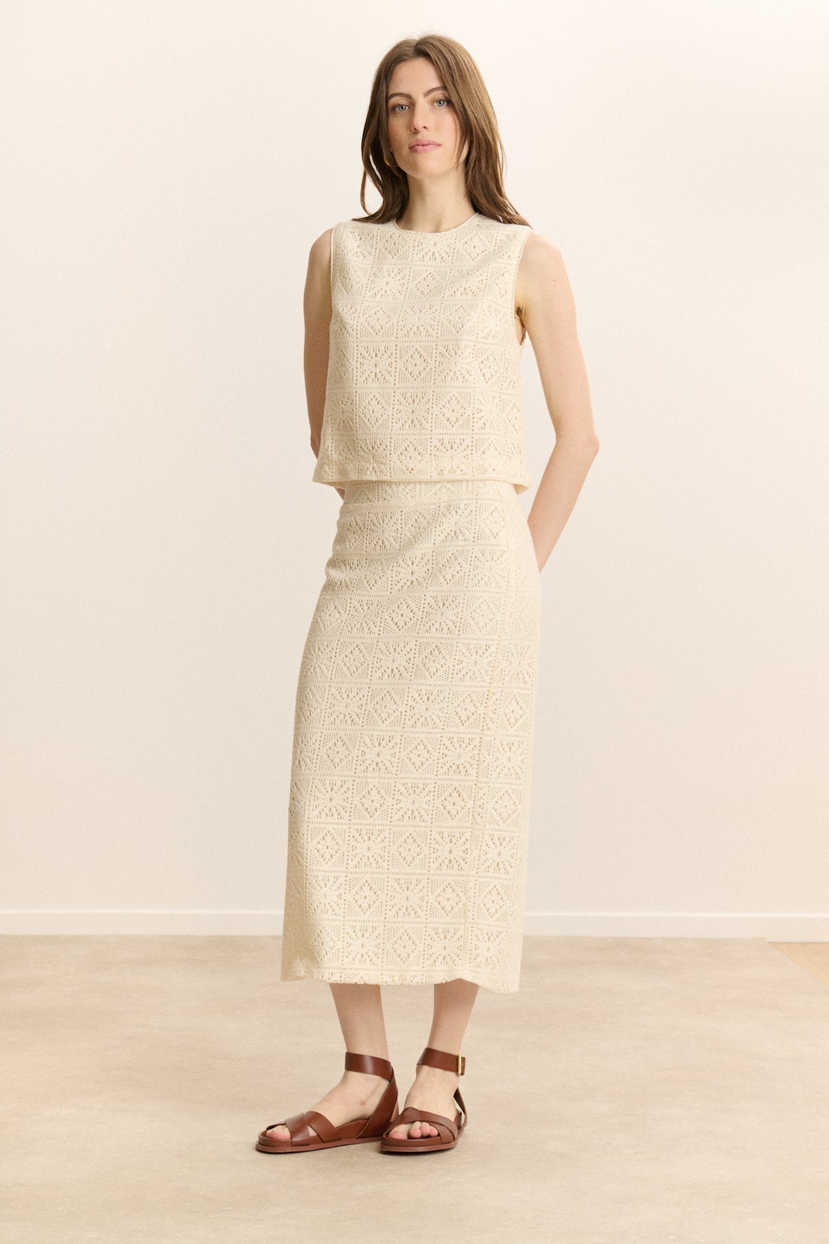 Jupe droite longueur midi