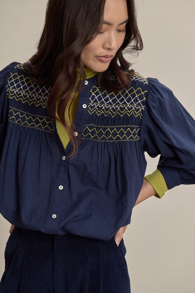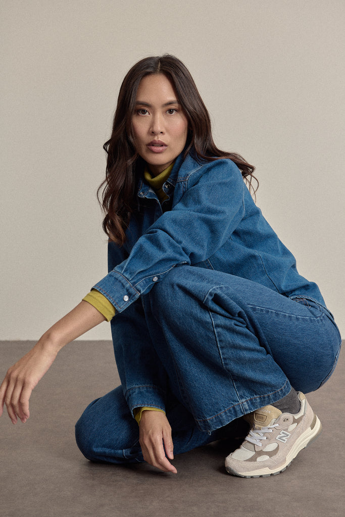 BRANDY se distingue par son tissu réversible : une face en toile, l’autre en velours. Avec son jeu de textures et sa coupe souple, elle invite à réinventer le quotidien sans effort.