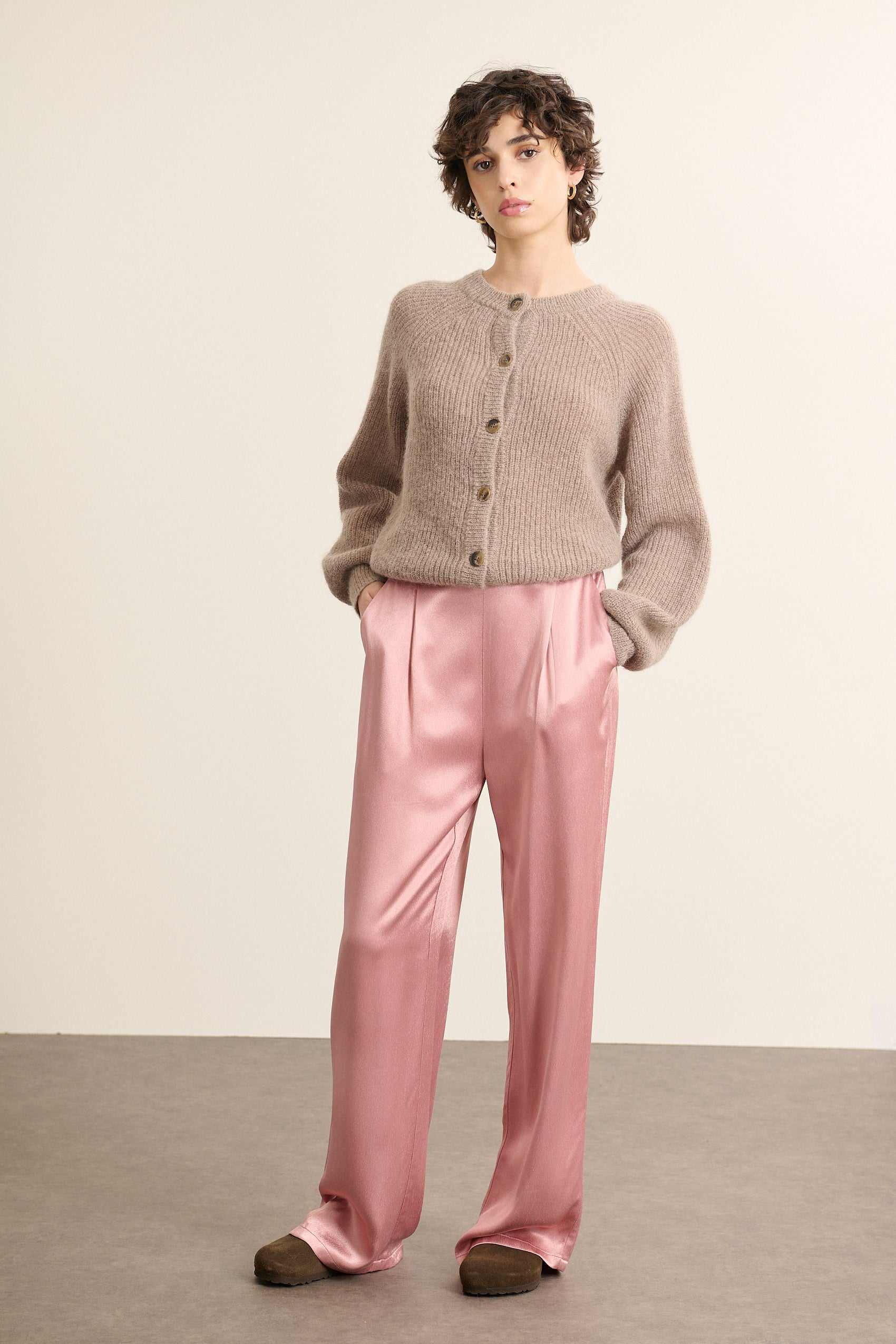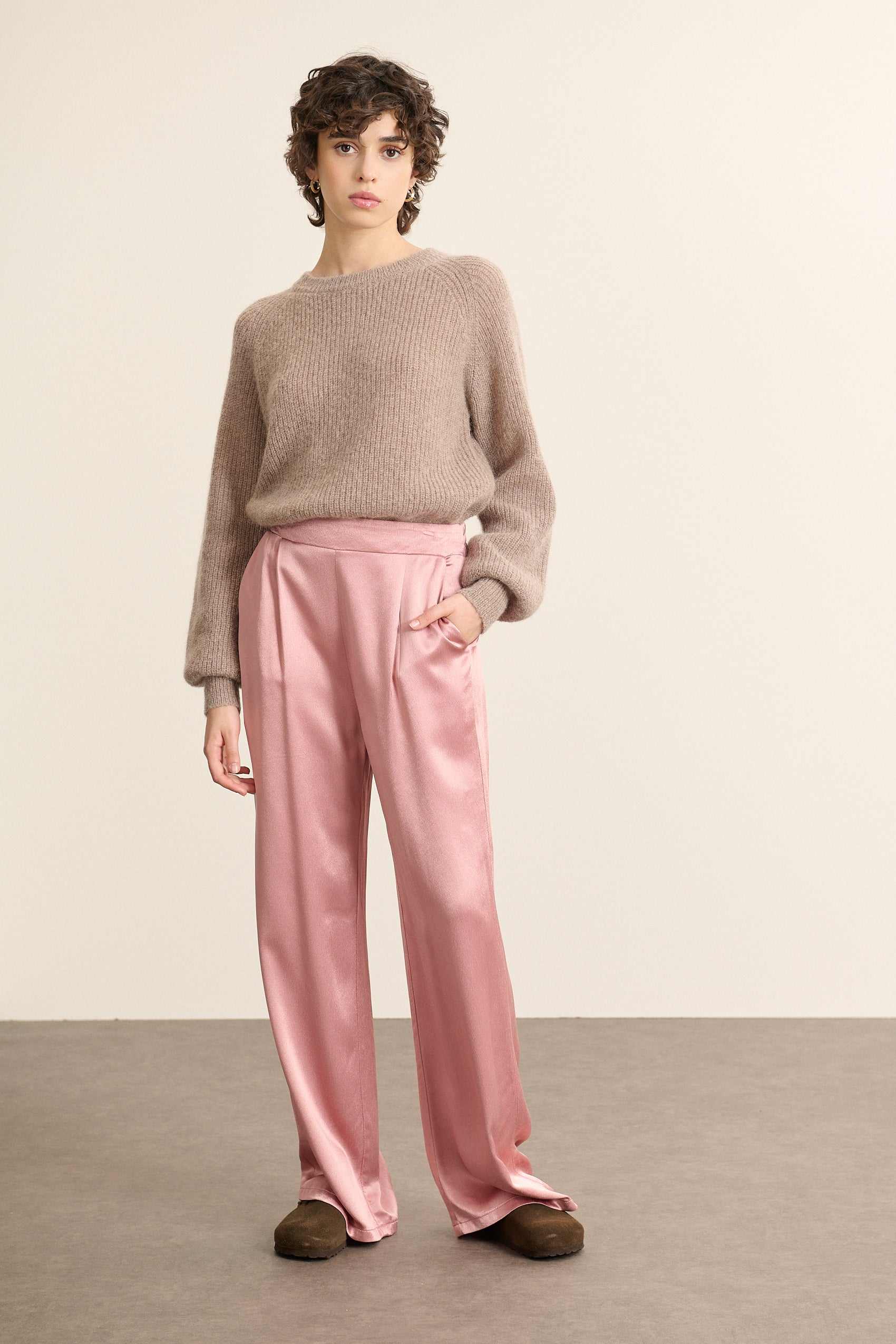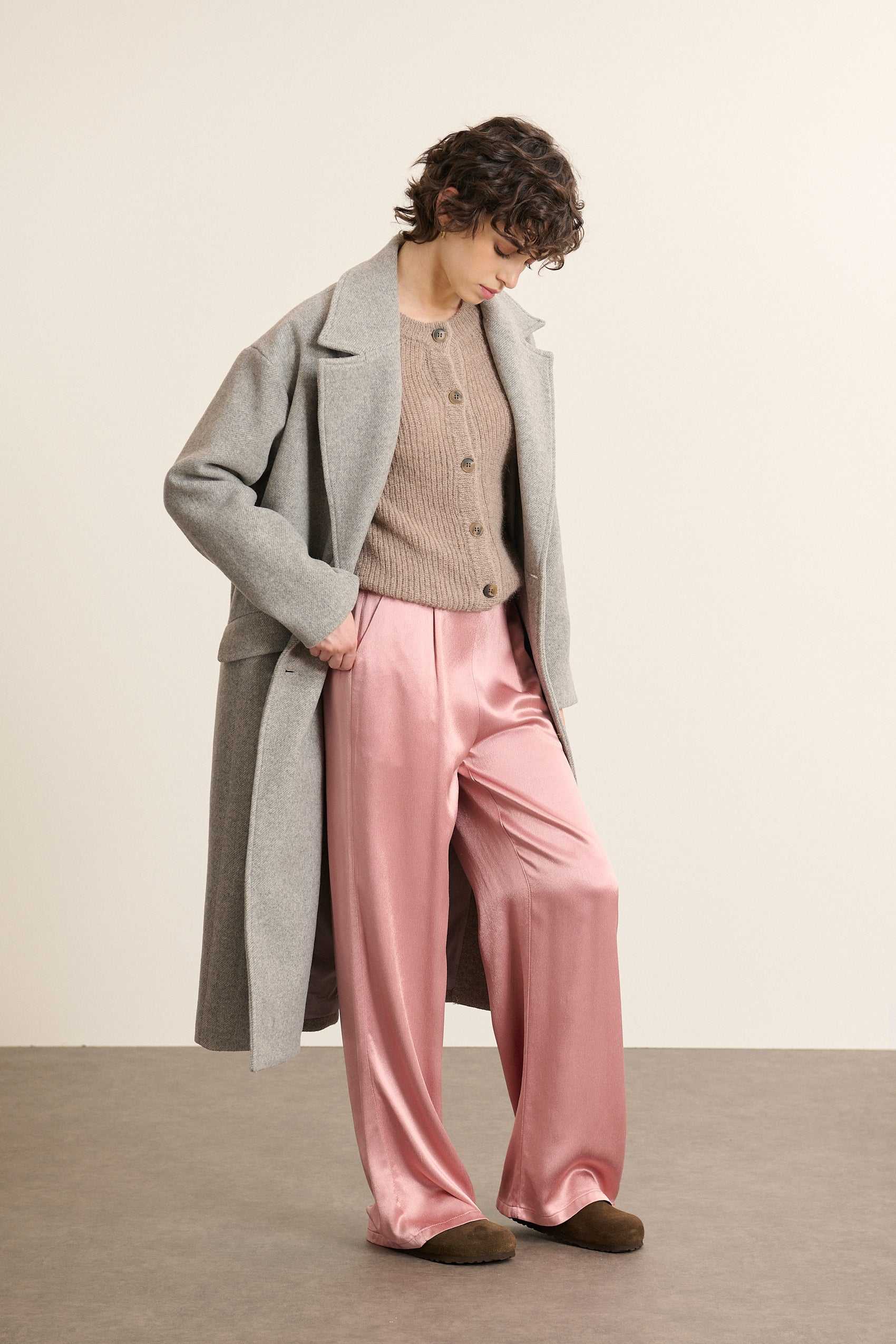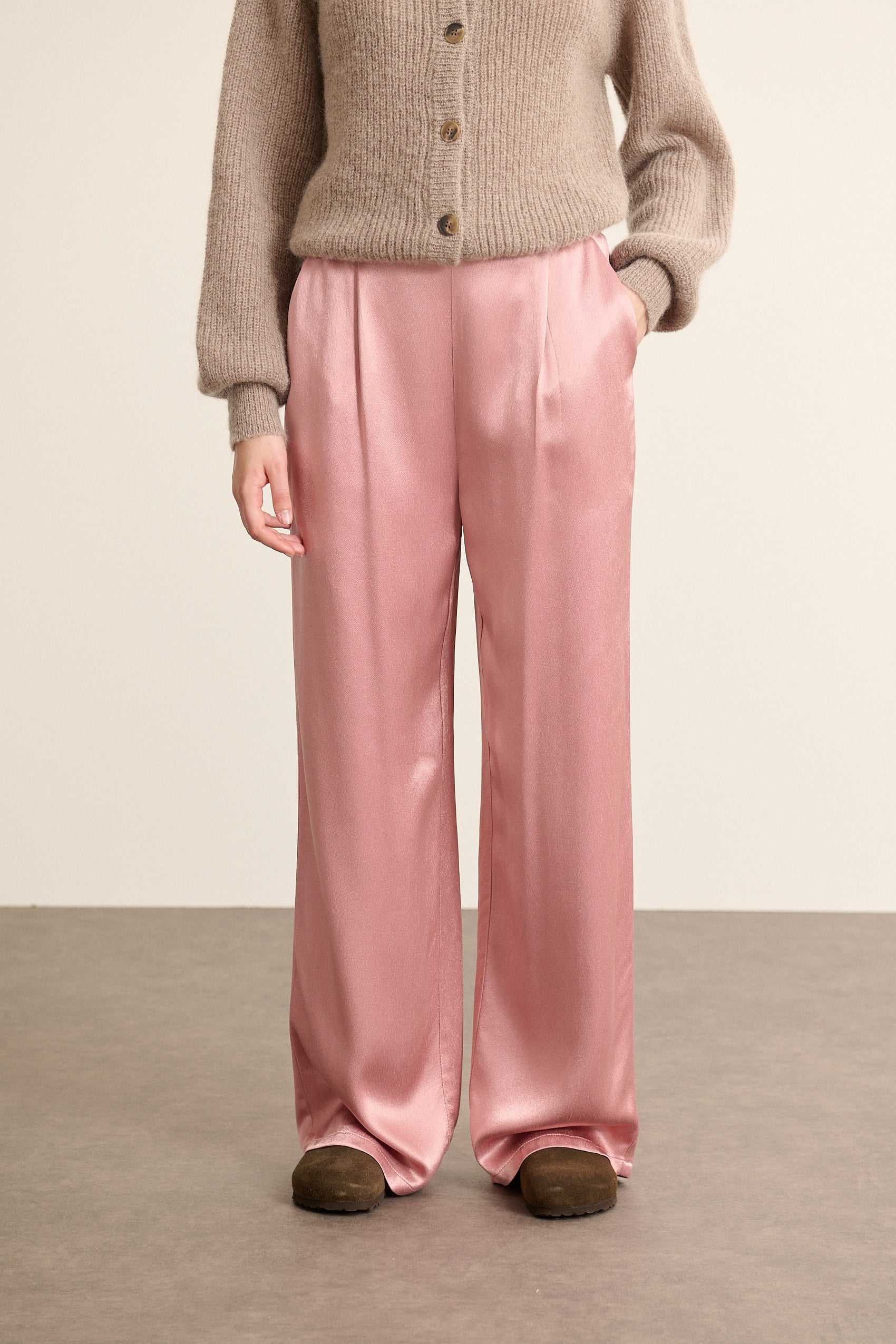 Pantalon droit fluide aspect satin